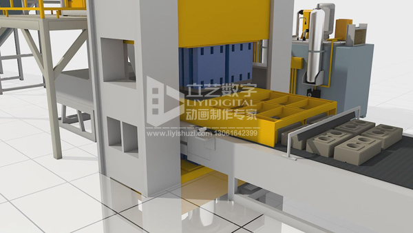 徐州三維動畫制作,徐州工業(yè)機械動畫,徐州產(chǎn)品演示動畫,徐州生產(chǎn)線工藝動畫制作公司將砌塊成型機生產(chǎn)線工藝流程:線主要由配料攪拌系統(tǒng)、砌塊成型機、疊板機、分板機、碼垛機、輸送機和電液控制單元組成。裝載機取料,將料分別放置在配料機里,控制室具有防塵隔音等功效,放置主機控制柜,配料攪拌控制柜,碼垛系統(tǒng)控制柜等電子控制儀器,自動電子稱重后,將料輸送至攪拌機里,同時水泥和水經(jīng)過精確計量后,放置攪拌機里攪拌,料倉經(jīng)電機驅(qū)動放料,補料車推入模具型腔進行互補料,上模預(yù)壓,面料車補面料,上模下壓,成型振啟動,下模提升,制品出磚。送板機送板的同時,將制品推入到出磚機上,經(jīng)面條傳動,前行至鐵板機處,將濕品逐層疊好,準備養(yǎng)護。叉車轉(zhuǎn)運,完成干品和濕品的取送,分板將養(yǎng)護好的干品逐層分開,放置分板輸送上。干品經(jīng)分板輸送至碼垛機,經(jīng)編碼器精確控制完成碼垛,確保垛層質(zhì)量。托磚板繼續(xù)前行,經(jīng)過清掃翻板后,推入橫輸送上,循環(huán)完畢。垛層完成后,人工打包。叉車將成品包轉(zhuǎn)運到成品堆放區(qū)。成品檢測合格。多功能砌塊成型機可生產(chǎn)多種磚型,地面磚,墻體磚和特殊磚型等。通過砌塊成型機生產(chǎn)線工藝流程演示動畫,砌塊成型機工業(yè)機械三維仿真動畫模擬配料攪拌系統(tǒng)、砌塊成型機、疊板機、分板機、碼垛機、輸送機和電液控制單元等機械設(shè)備的作業(yè)狀態(tài)。無論是產(chǎn)品演示宣傳動畫還是工業(yè)機械設(shè)備原理展示動畫,都會在企業(yè)實地進行考察,從制作到配樂事無巨細。